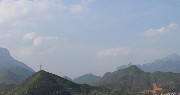 玉山縣樟村鎮(zhèn)防洪工程項(xiàng)目所在地,一眼望去,左邊是革命教育基地懷玉山,右邊是世界地質(zhì)公園三清山(如上圖)。